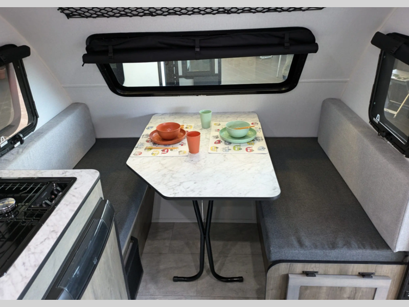 Sleeps 4 Length 14 ft 4 in Ext Width 6 ft 5 in Ext Height 7 ft 7 in Int Height 6 ft Hitch Weight 143 lbs Dry Weight 1095 lbs Fresh Water Capacity 15 gals Grey Water Capacity 15 gals Tire Size 13" Furnace BTU 20000 btu Refrigerator Type 12V Axle Count 1 Number of LP Tanks 1 -