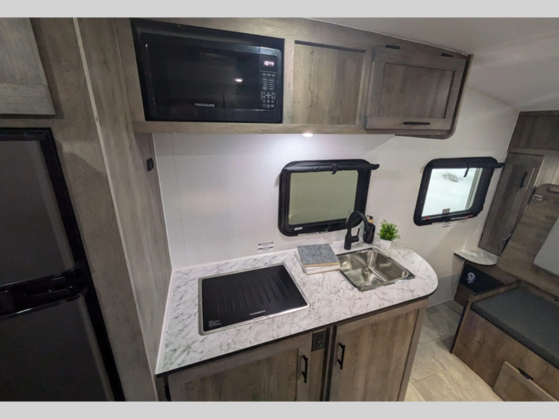 Sleeps 5 Length 17 ft 8 in Ext Width 6 ft 6 in Ext Height 8 ft 2 in Int Height 6 ft 4 in Hitch Weight 195 lbs Dry Weight 1805 lbs Fresh Water Capacity 15 gals Grey Water Capacity 15 gals Black Water Capacity 15 gals Tire Size 14" Furnace BTU 20000 btu Number Of Bunks 1 Refrigerator Type 12V Axle Count 1 Number of LP Tanks 1 Shower Type Wet/Bath Shower -